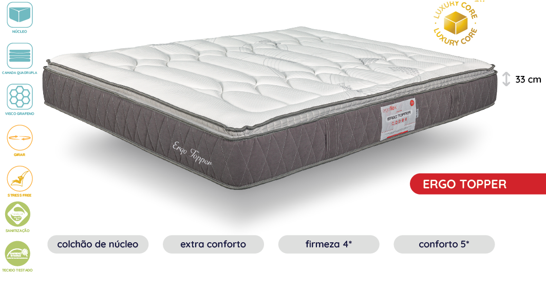 Colchão Ergo Topper ERGOx: Máxima qualidade e conforto, num colchão de viscografeno.