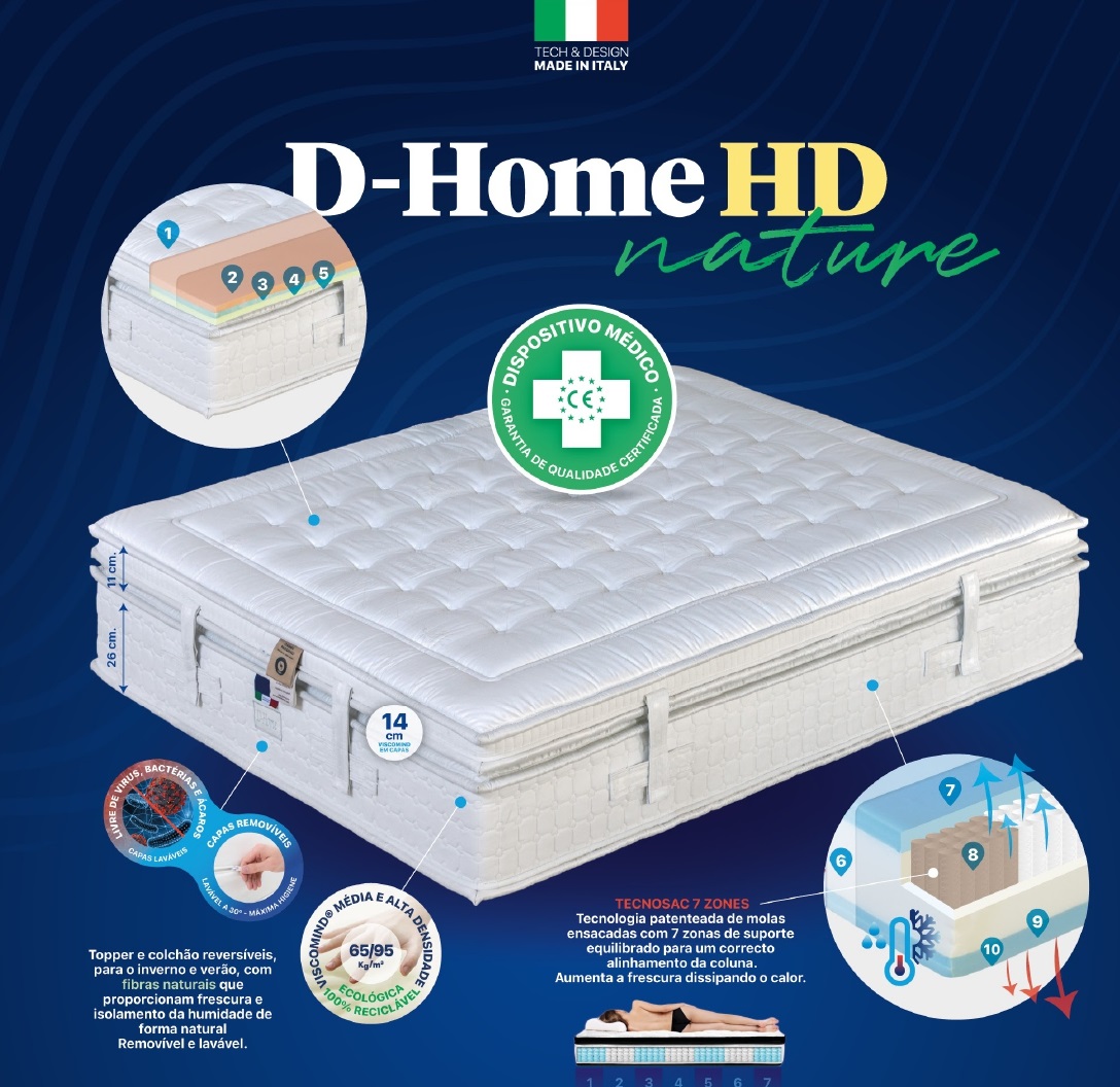 Colchão D-Home HD Nature PLUS SALUTE (M. Ensacadas + Topper HR e Visco, Bio)