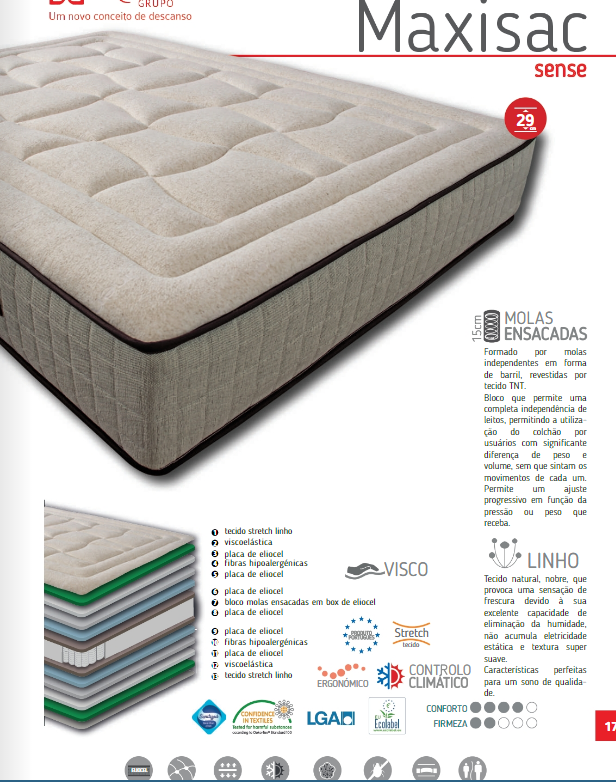 Superfície firme e uniforme com um acolchoado de máxima qualidade Colchão com certificação Ecolabel (certificação ambiental oficial da União Europeia, que premeia produtos e serviços de excelência ambiental).