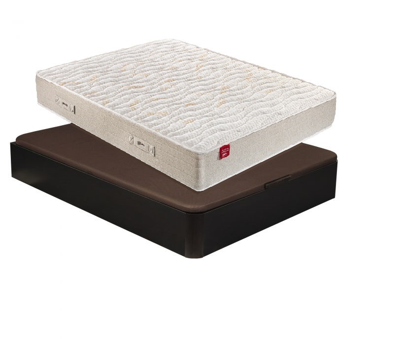 do conjunto: o colchão PIKOLIN molas Ensacadas, duas zonas de descanso independentes, adaptável e com firmeza média. O sommier Rebatível madeira da Pikolin CAIXA DE ARRUMAÇÃO: com 25 mm de espessura. Tampa elevatória forrada a tecido respirável. (54h)